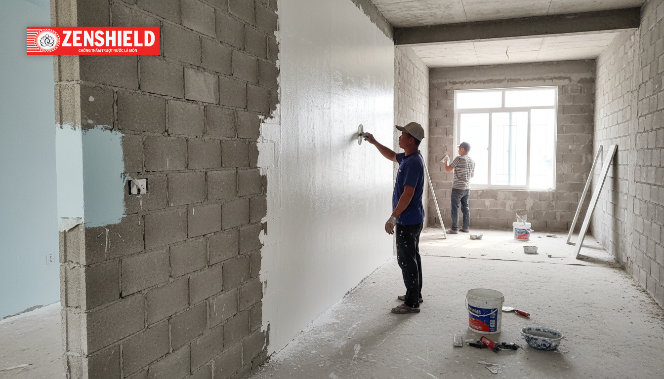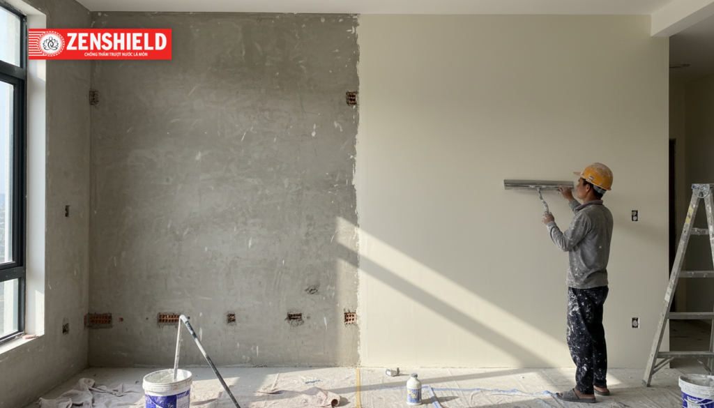 Đây là yếu tố kinh tế mà ít ai để ý. Tường xi măng có độ hút nước rất cao. Nếu sơn trực tiếp, tường sẽ hút rất nhiều sơn, gây tốn kém vật tư gấp nhiều lần. Lớp bột trét đóng vai trò như một lớp đệm, ngăn cản sự hút thấm quá mức này, đồng thời tăng cường liên kết giữa bề mặt tường và màng sơn sau này.