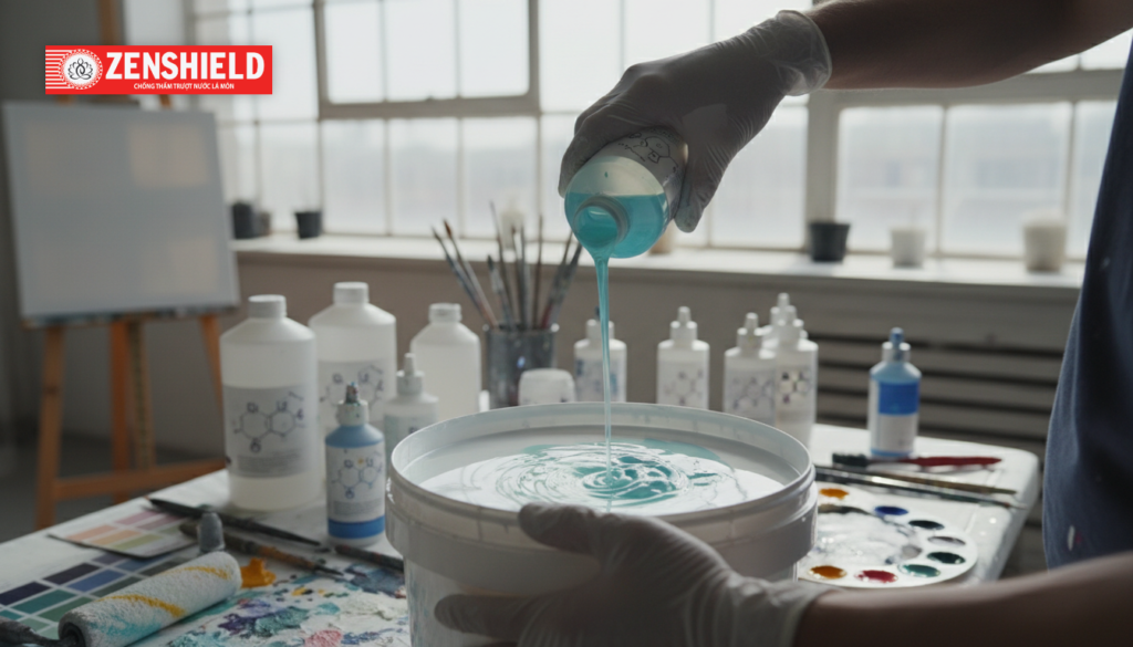 Đối với các dòng sơn thùng đóng gói sẵn từ các thương hiệu uy tín (như Zenshield), nhà sản xuất đã tính toán tỷ lệ phụ gia tối ưu (công thức vàng) để đảm bảo các tính năng đã công bố. Việc bạn tự ý pha thêm các loại phụ gia trong sơn không rõ nguồn gốc hoặc không tương thích có thể gây ra phản ứng hóa học ngược. Hậu quả là sơn bị vón cục, tách lớp, hoặc mất đi khả năng bám dính.