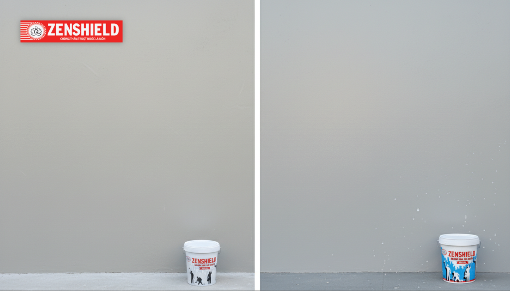 Sơn thường hay sử dụng lượng lớn bột độn (filler) để giảm giá thành, làm cho sơn nhanh bị phấn hóa. Trong khi đó, Zenshield sử dụng nhựa Acrylic nguyên chất kết hợp với hệ phụ gia nhập khẩu chất lượng cao. Điều này giúp màng sơn có độ đàn hồi tốt, chịu được các vết nứt chân chim nhỏ của tường bê tông – điều mà sơn thường khó làm được.